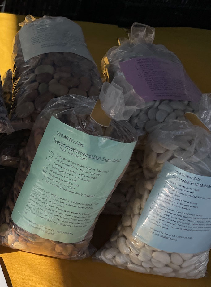 Beans: Yellow Beans | Pinquito Beans | Black Beans | Speckled Lima Beans | Lima Beans | Garbonzo Beans | Fava Beans