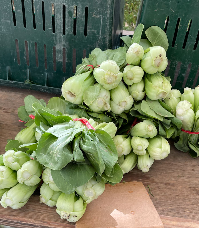 Bok choy has long bleach–white, well-shaped & unblemished stalks. The stalks are crisp like celery but are not stringy & tender when cooked. Dark green leaves are highest in vitamin content and flavor. Use fresh, in salads, stir-fries, soups or anywhere you would use celery. Refrigerate unwashed in a perforated plastic bag.