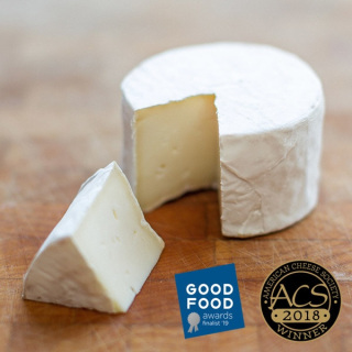 Ragged Point is a small format bloomy rind triple crème cow’s milk cheese named for the gateway to Big Sur just North of our farmstead. The paste stays firm as the cheese matures, and does not become overly soft. As Ragged Point ages past four weeks, it takes on a peppery character and a distinct cream line underneath the rind forms. We enjoy this cheese with apples, honey and crusty bread. We were honored to win 3rd Place at the 2018 ACS awards and make the finals of the Good Food Awards with this little button.