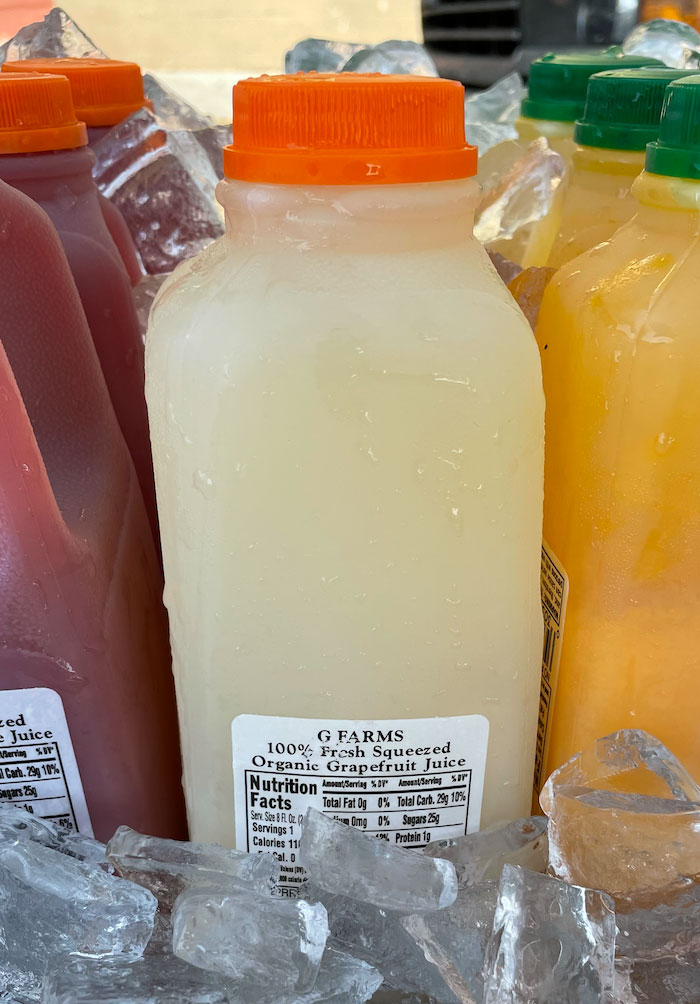 100% fresh squeezed organic grapefruit juice from our farm in southern California