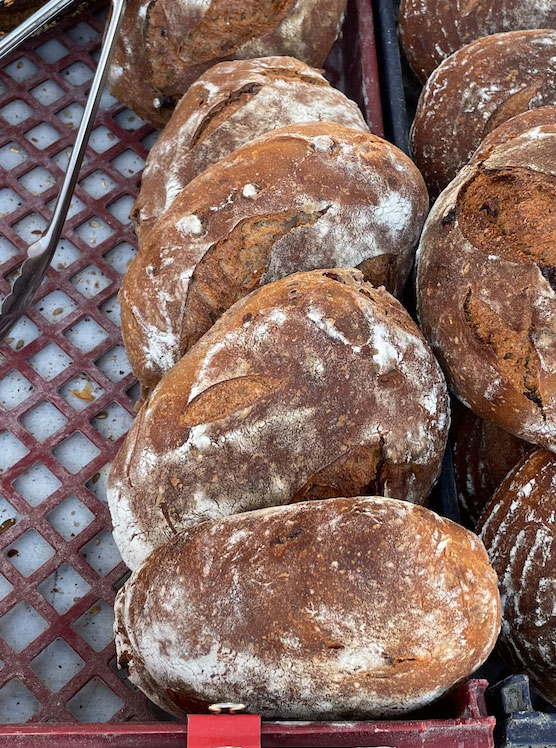 Fresh baked bread made from freshly milled organic whole grains.