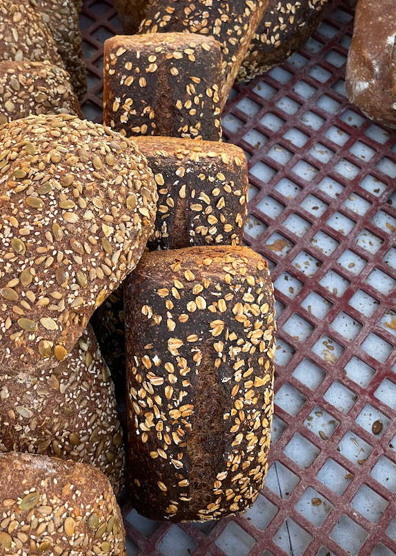 Fresh baked bread made from freshly milled organic whole grains.