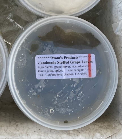 $6.00From: Mom’s Products Size: 6 oz Fresh made stuffed grape leaves Ingredients: grape leaves, rice, olive oil, lemon juices, spices